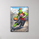 Bring high-energy street vibes to your space with this bold comic-style illustration featuring a fierce alien dominating the basketball court.