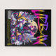 Ride into the rhythm of the streets with this electrifying puzzle, where neon dreams and gritty beats collide. Featuring a pink-haired rebel on a yellow scooter, surrounded by graffiti, skyscrapers, and sonic chaos, this design pulses with attitude and style. From striped socks to booming speakers, every detail celebrates the raw creativity of city life. Perfect for fans of streetwear, anime flair, and puzzles that groove to their own beat.