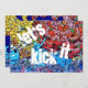 Sometimes a frilly invite just doesn't cut it!!! A familiar urban setting with a graffiti wall and the message, "Let's Kick It" on the front. On the back is a large paint splotch with all the party info and line by line personalization. Have fun!!!