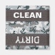 Magnet with military urban camouflage seamless pattern background and CLEAN / DIRTY text.