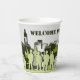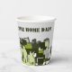 Rectangles in various sizes in shades of grey, green and white make up the camouflage design of these paper party cups. The current text, "Welcome Home Dad!" can be changed to your own words to match your occasion. Coordinating paper party napkins and plates are also available in this store in the "Party Supplies: Plates, Napkins, etc. > Birthdays" category.