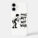 A powerful Banksy-inspired stencil art design featuring a young artist defying conflict through creativity. This monochrome iPhone case captures the spirit of street art, transforming a simple message of hope into a bold statement of peaceful resistance. The text reads MAKE ART NOT WAR.