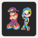 Urban Cartoon Duo Tee. A vibrant cartoon tee featuring a bold street-style boy and a colorful retro-fashion girl standing side by side. red, blue, green, pink, purple, yellow, orange, heart, rose, butterfly, floral, romance, love, ribbon, spring