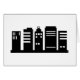 Simple solid black graphic of big city skyscrapers. Customize and choose your own background colour. Image available on various gifts and products.