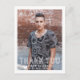 The modern photo graduation thank you postcard features a bold outline font overlay, white border, and placeholders for custom text and a photo.