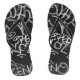Street scene urban flip flops in Monochrome Grey & Black Graffiti Style pattern. Main colours are Grey & Black.