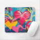 This vibrant graffiti artwork captures the essence of love with an explosion of colourful hearts against a dynamic blue background. The overlapping shades of pink, yellow, red, and orange hearts, combined with splashes and drips of paint, create a lively and passionate scene, embodying the spirit of street art and romance.