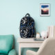 Backpack: Elevate your daily commute with our Urban Marble in Blue and Black Backpack. This design features veins of blue, white, and grey flowing on a rich, black canvas embodying an edgy modern vibe. Designed for the urban explorer, this backpack combines fashion-forward design with practical features, ensuring you stay organized and stylish on the move.