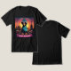 This eye-catching T-shirt design features a cool peacock wearing oversized sunglasses, set against a vibrant, retro-style sunset. The design blends urban elements with nature, as city skyscrapers frame the bird under an arched rainbow of warm colours. With a fusion of neon tones and vintage aesthetics, this design captures both a playful and stylish vibe. Ideal for lovers of quirky, bold fashion statements, it’s perfect for streetwear or summer festival looks. The peacock’s feathers, highlighted by the warm glow of the sunset, add a striking visual appeal.