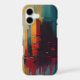 The composition feels both structured and expressive. Strong vertical lines suggest stability and scale, while loose edges and painterly drips introduce emotion and spontaneity. Reflections and layered color fields hint at streets, windows, and urban reflections without becoming literal, allowing the city to exist as a mood rather than a specific place.