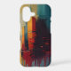 This dynamic abstract artwork captures the energy and rhythm of a modern city through towering vertical forms and bold architectural silhouettes. Warm tones of amber, rust, and deep red rise alongside cool blues and charcoal grays, creating a powerful contrast that evokes skyscrapers bathed in shifting light. Dripping paint and textured brushstrokes add a sense of motion, as if the city itself is breathing, pulsing, and constantly evolving.