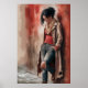 This striking wall art poster features a captivating digital painting of a woman in a moment of urban solitude and introspection.