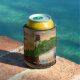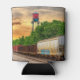 A can cooler featuring a beautiful evening sunset behind an old water tower and train in downtown Rogers Arkansas, United States.
