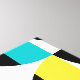 Abstract background pattern made with geometric shapes (circular and rectangular) in yellow, blue, red and black colours. Modern, simple, playful and vibrant vector art.