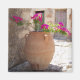 urn flower pot with pink bougainvillea. Pretty magnet to add to your fridge
