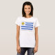 The front of this t-shirt boldly displays the Uruguayan flag with its distinctive white and blue stripes with a yellow sun on white canton. This is matched at the back by an attractive map of Uruguay.