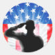 US flag military soldier saluting in silhouette Classic Round Sticker