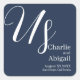 US Modern Romantic Wedding on Navy Blue Square Sticker