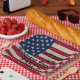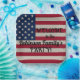 US Patriotic American Flag on a simulated linen fabric with stars and stripes, red white and blue colours, and text. The calligraphic text is customizable.