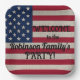 US Patriotic American Flag Linen Calligraphy Text Paper Plate