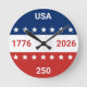 USA 1776 2026 250th Anniversary Red White Blue Round Clock