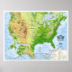 On this physical map of the United States of America you can see the geography of vegetation, deserts and tundra, which are explained in a legend.