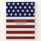 Show your pride for the USA with this custom notebook featuring an American Flag inspired design of Red, White & Blue stars and stripes. Add two lines of text to personalize.