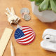The flag of USA has been deftly fitted to the circular fob of this keychain. A handy reminder of American heritage.