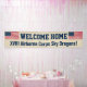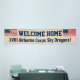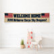 Welcome home your loved one or any group of patriots with this large banner with customizable blue text featuring two United States of America flags on a desert sand coloured background.