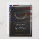 Personal photo decorated with gold laurel leaves and a gold frame on glorious American flag fluttering against a black background. This luxurious, patriotic-themed design is perfect for couples in the military or those working in government.