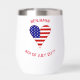 Personalized thermal wine tumbler designed to share your love of all things American. Design shows a heart-shaped flag of the red, white, and blue flag of the United States of America. Above is a spot for your name (or someone else's, if this is a gift), below a place to write an occasion (birthday, Valentine's Day, Independence Day, etc.) and year. Enjoy your cookout or barbeque while honouring your love of your heritage. Great housewarming gift. Terrific for family reunions and friend reunions, too.