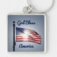 Beautiful photo of the sun shining through the American Flag and message "God Bless America" is featured on this key chain. A great key chain to use yourself or give as a gift to that patriotic family member or friend!