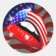 USA Flag Lipstick on Sensual Lips Classic Round Sticker