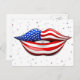 USA Flag Lipstick Stars and Stripe Colours on Smiling Sensual Woman's Lips