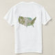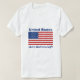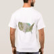An editable title and slogan accompanies the red and white stripes with white stars on blue canton of the American flag on the front of this t-shirt. The back displays a detailed map of USA.