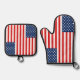 Usa Flag pattern BBQ Oven Mitt and Pot Holders Oven Mitt & Pot Holder Set