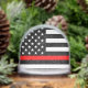 A Thin Red Line symbolic US flag custom design graphic on a snow globe. A great gift idea for gatherings, memorial celebrations and remembrance occasions. Use the "Messager" link to contact us with your special design requests or for some assistance with any of your customization project needs.