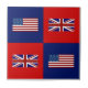 An alternating design with the American Flag and British Union Jack Flag on a red and blue background.