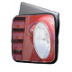 USA, Maine, Owl's Head. Headlight and partial Laptop Sleeve