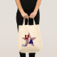 USA Plaid Star Grocery Tote-In the centre of the bag is an over sized plaid star. The plaid is from a collection of red, white and blue plaids (see them all in the fabric store). The star is beveled and textured and trimmed with digital stitching. On top of the star is the letters USA spelled out in red, white and blue. These are also textured, beveled and trimmed in digital stitching. One text area is in place (blue print) for you to personalize with. Edit the text to say anything you like. Delete the text if it's not wanted.