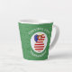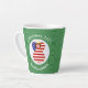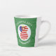 Latte mug for Christmas has an angel dressed in the flag of the United States of America. This USA Flag Angel flies in the centre of a white fractal of squiggly squares set in the centre of a green fractal of squiggly squares. Add your name, or the name of someone else, if giving as a gift, to personalize. Customize by changing the ?? to a year of your choice. Designed for your Christmas decor this holiday season.