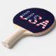 USA Text American Flag on Custom Navy Blue Sport Ping Pong Paddle