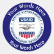 This custom sticker is decorated with the United States Agency for International Development USAID shield that can be customized with a choice of words above and below that allow you to personalize it with the name of a person, place, position, etc.
