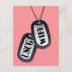 These flat notes feature a glossy illustration of US Coast Guard Wife dog tags on a pink background on the front, and a matte blank back so you can write your own message.