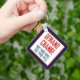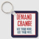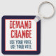 Social justice / protest / reform keychain with red and blue "Demand Change. Use Your Voice. Use Your Voice" text