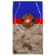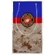 Use these Marine Corps gift bags for Marine Corps graduation from boot camp at either MCRD San Diego or Paris Island. Perfect as gift bags at a going away deployment party or even to hold a USMC veteran gift. Don't forget about a Marine Corps retirement party or even gifts for Marine Moms. Throw a Marine Mom shirt in there, or a Marine Mom Christmas ornament and it would make any Marine Mother cry. Don't forget about Marine Corps Dads, or grandparents either. Think about giving a token of appreciation to a United States Marine Corps recruiter at Christmas. The design contains a background of desert digital camouflage with the US Marine Corps Seal.