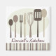 Une collection de cuisines et d'ustensiles de cuisine amusants et rétro décorent cet aimant de cuisine personnalisé. Dans des tons neutres de marron, beige, tan et ardoise. Autres jeux de couleurs disponibles :