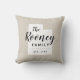 Modern farmhouse throw pillow personalized with your family name inside your state map. Faux burlap canvas texture background (please note pillow covers are not made of burlap material). Click the Customize It button to add your own text and select from all of our pillow styles to create your own unique one of a kind design!