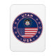 Badge of Utah with flag of Utah and flag of USA colors, rounded shape.