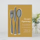A modern Grand Opening invitation featuring a fun utensils illustration to announce your restaurant opening.